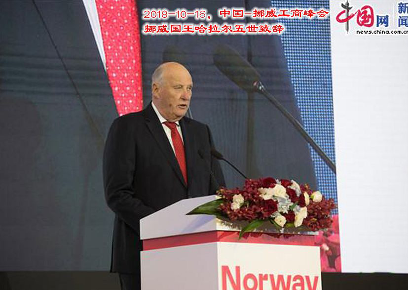 应国家主席习近平邀请,挪威国王哈拉尔五世于10月11日至20日对中国进行国事访问。10月16日,哈拉尔五世和王后宋雅出席了由挪威创新署和中国国际贸易促进委员会共同主办的中国-挪威工商峰会。 此次峰会的主题为"引领可持续开展解决方案",涵盖了智慧城市、海上风电、技术改变驱动创新、石油天然气等重要议题。
